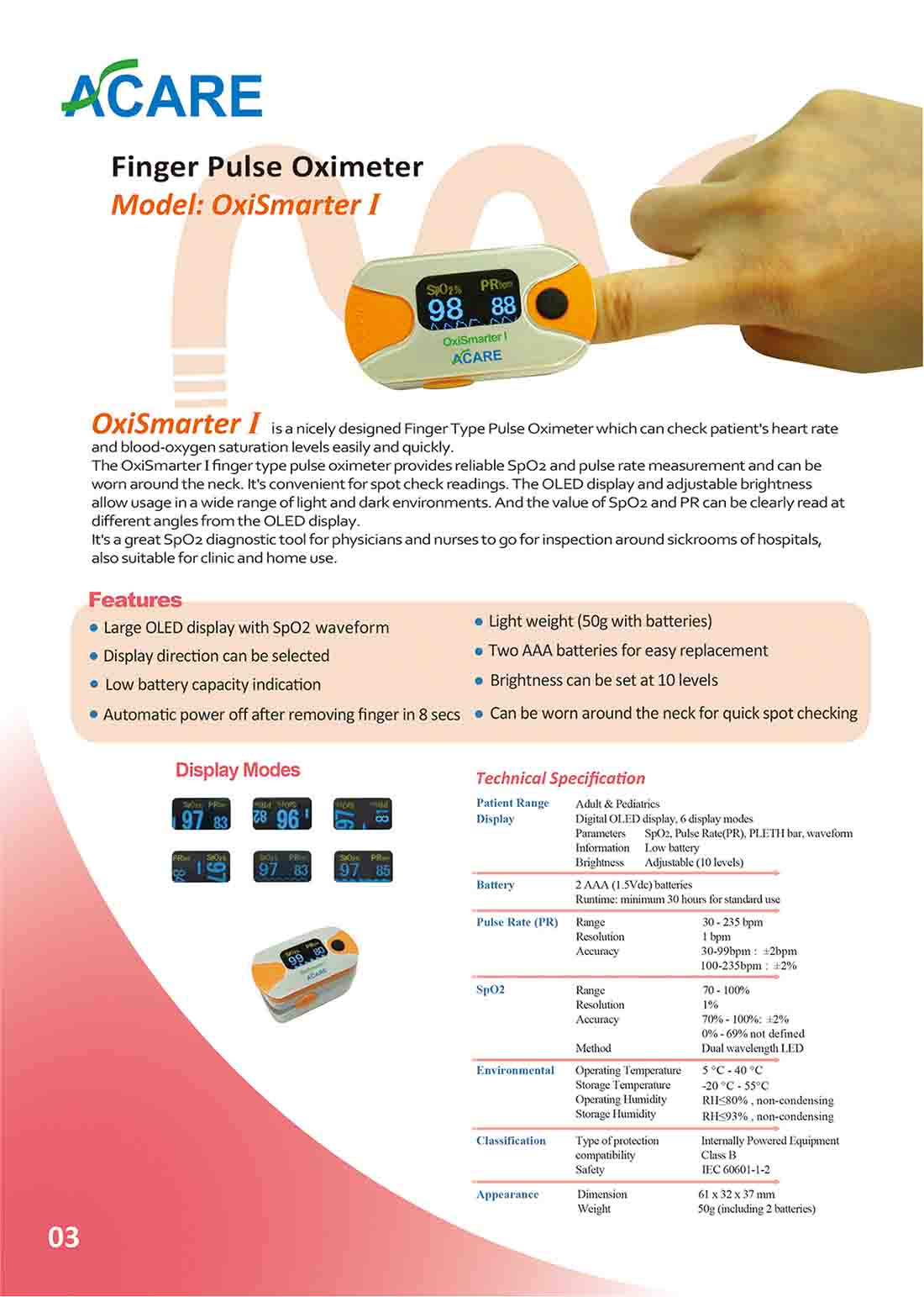 OxiSmarter I is a nicely designed Finger Type Pulse Oximeter which can check patient's